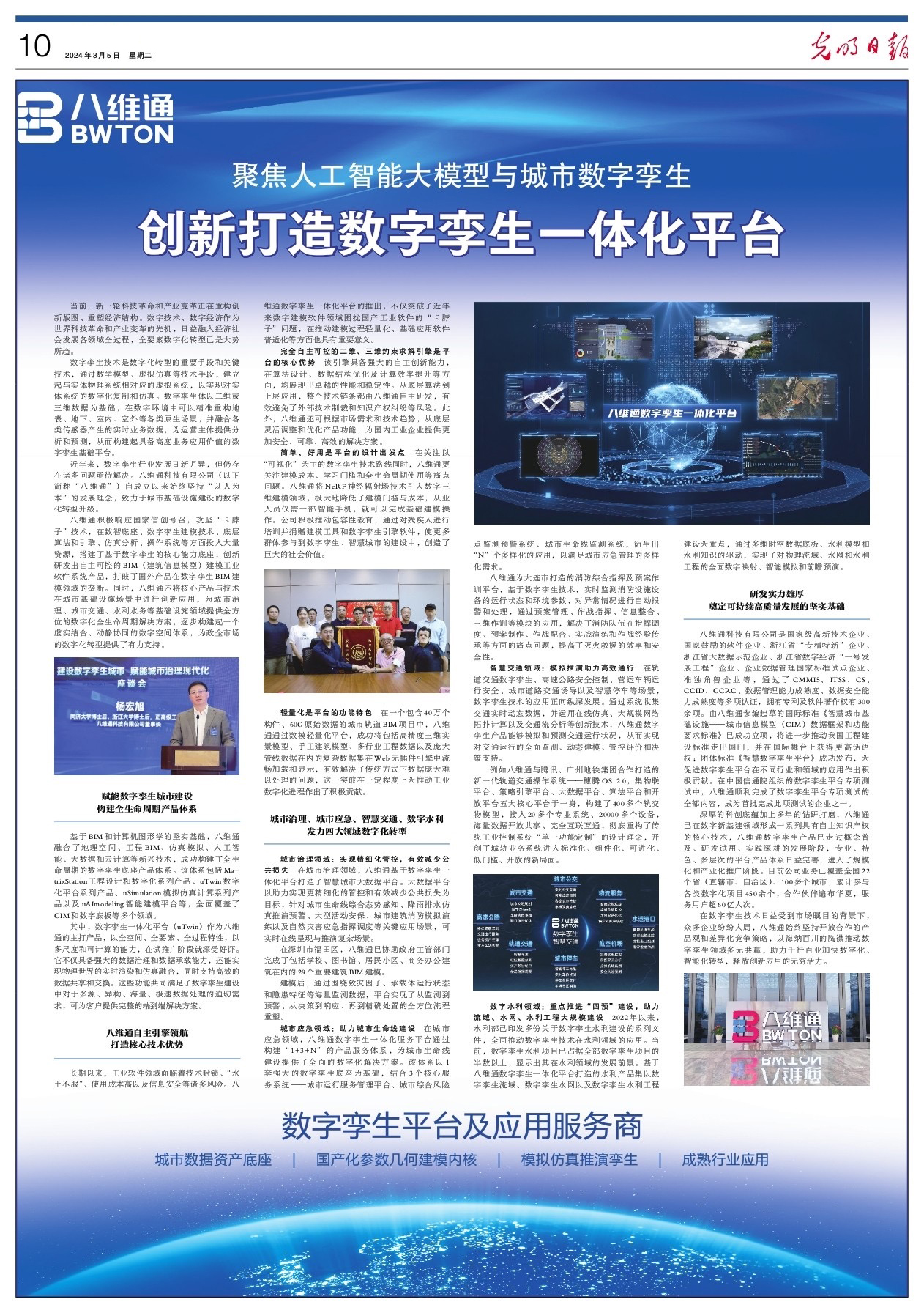 《光明日報》整版聚焦!八維通創新打造數字孿生一體化平臺
