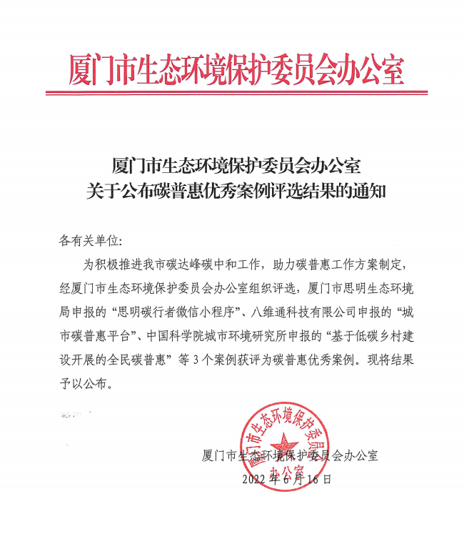 八維通“城市碳普惠平臺”項(xiàng)目獲評廈門市碳普惠優(yōu)秀案例
